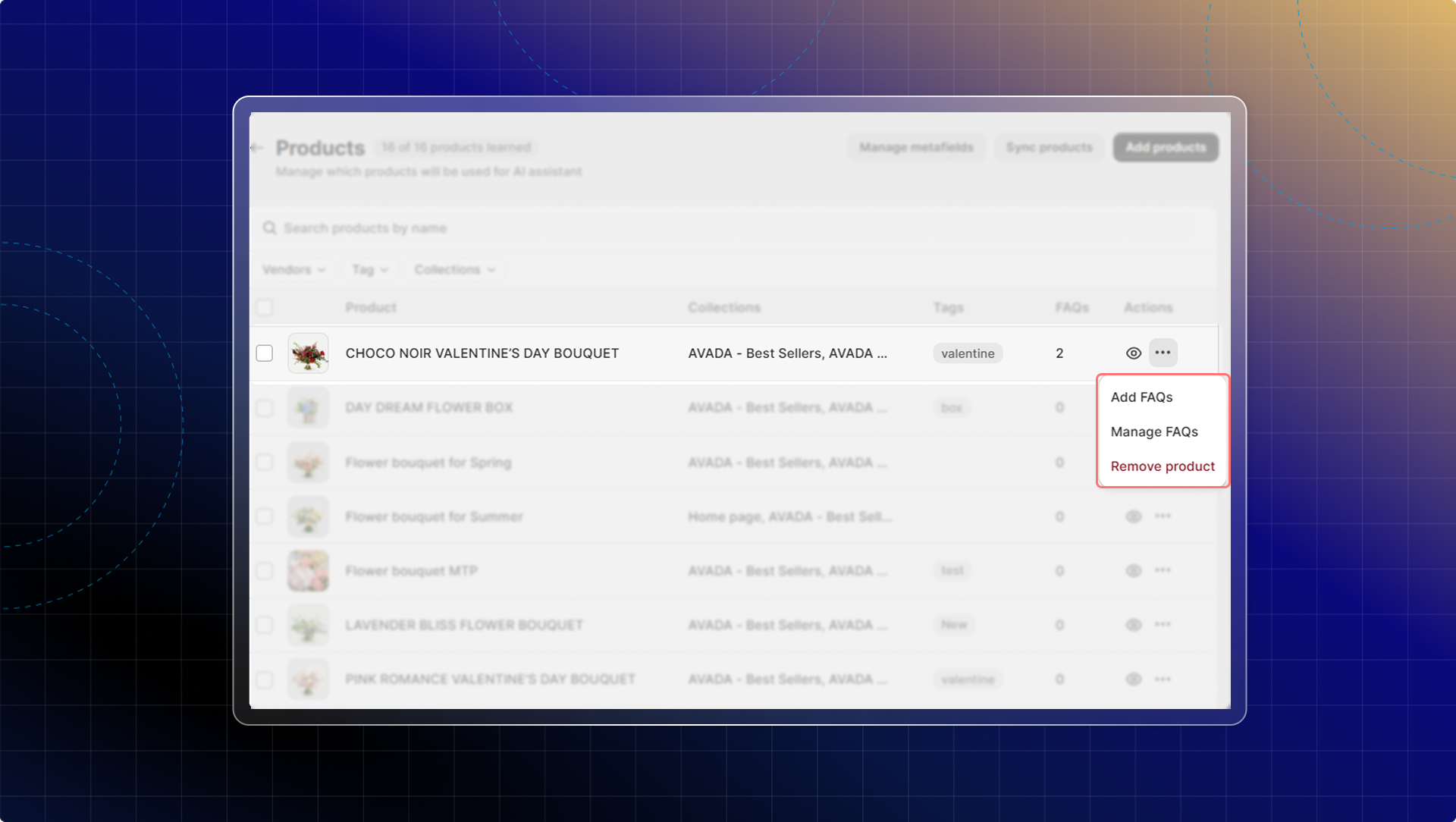 After syncing all products, you can manage which products are used to train AI.