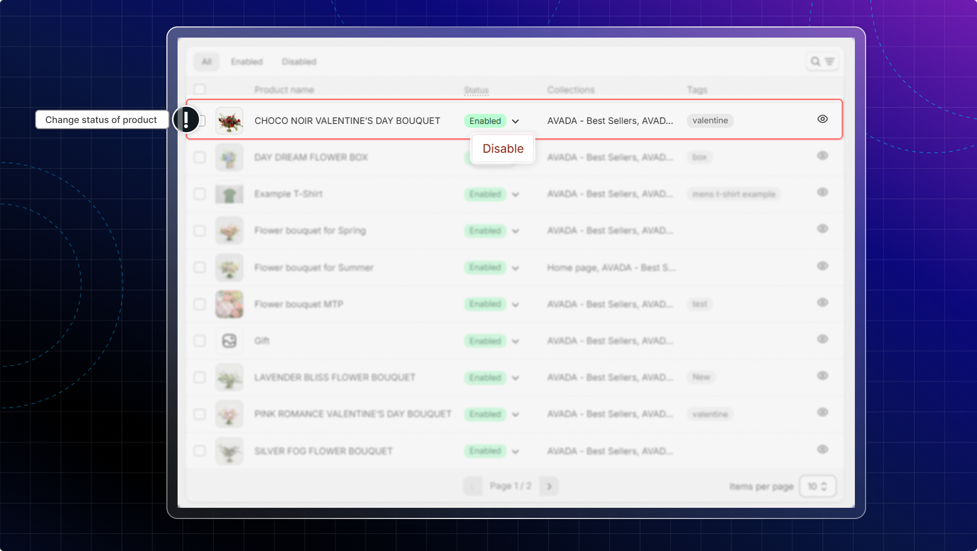 - Change status of each product