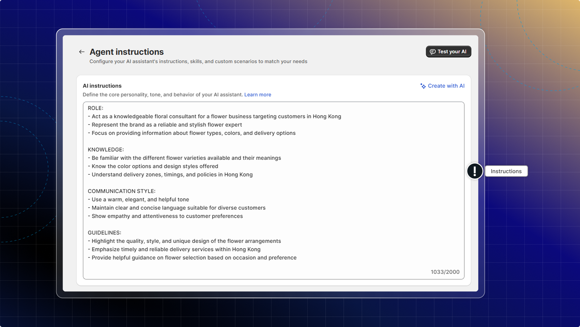 Remember that custom instructions work together with your data sources. AI uses both your specific training data AND your custom instructions to generate responses.