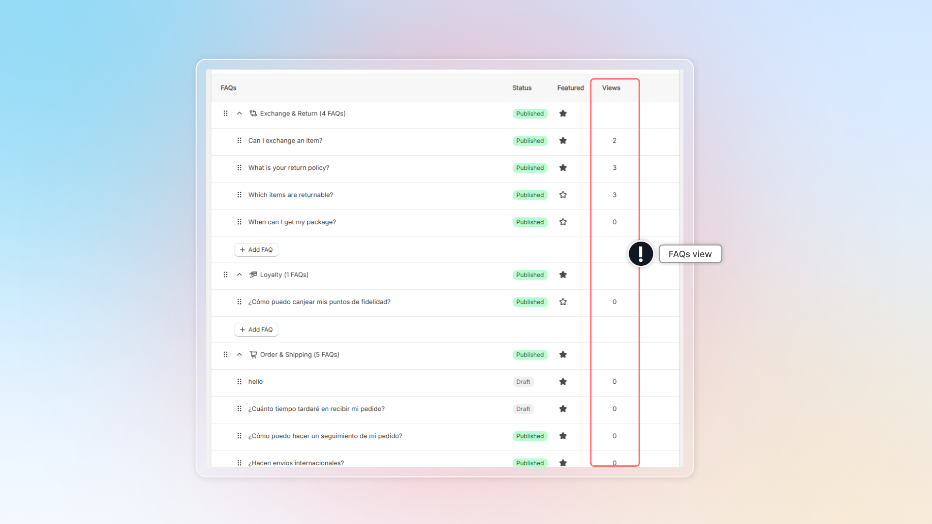 In FAQs analytics, you can check total views of FAQs