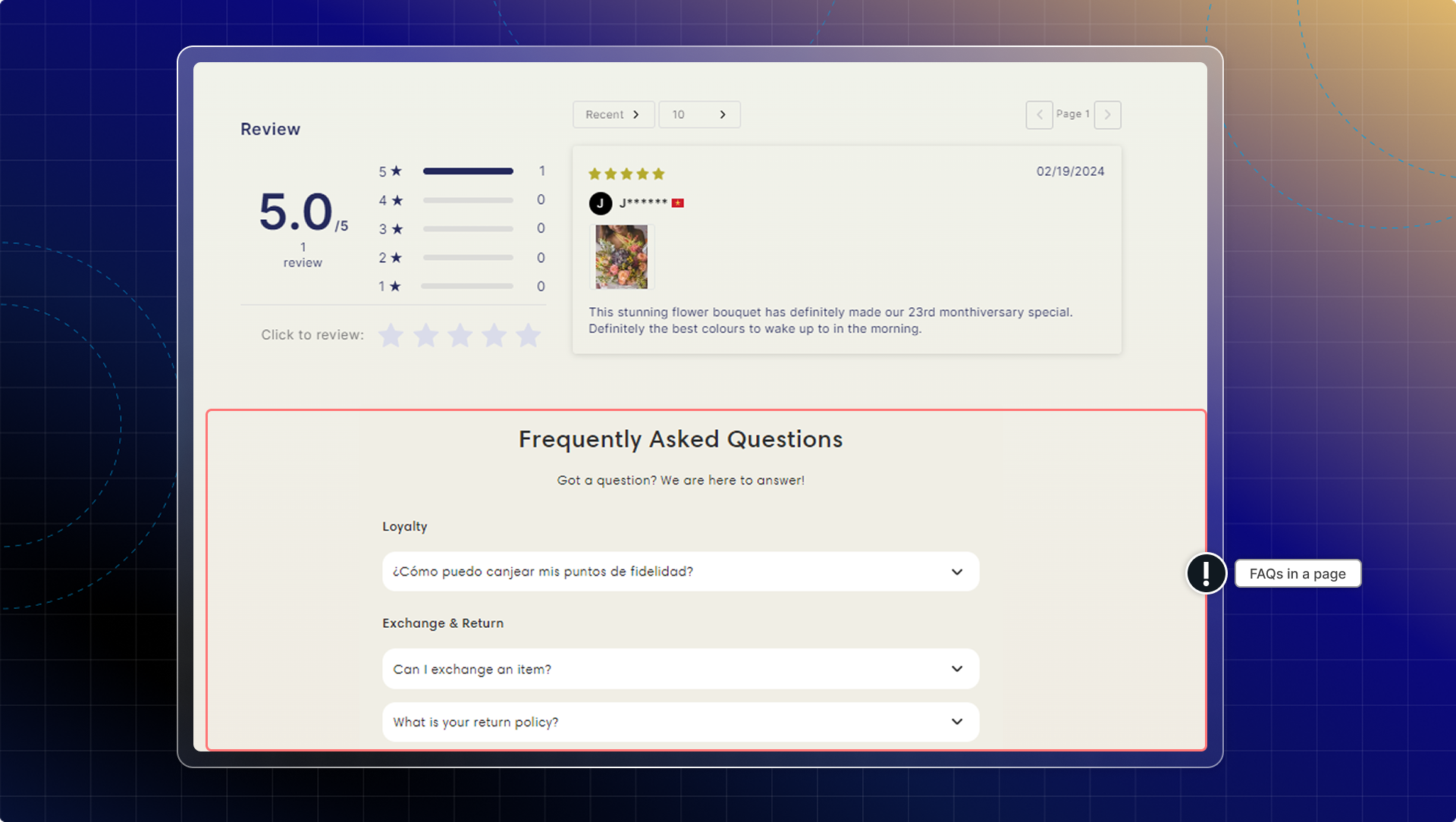 - Create multiple FAQ blocks for different products or collections