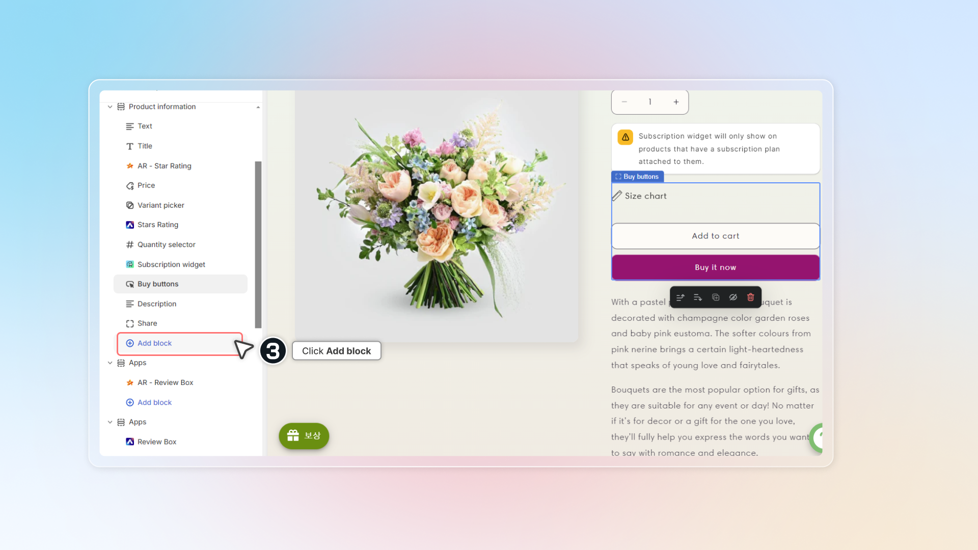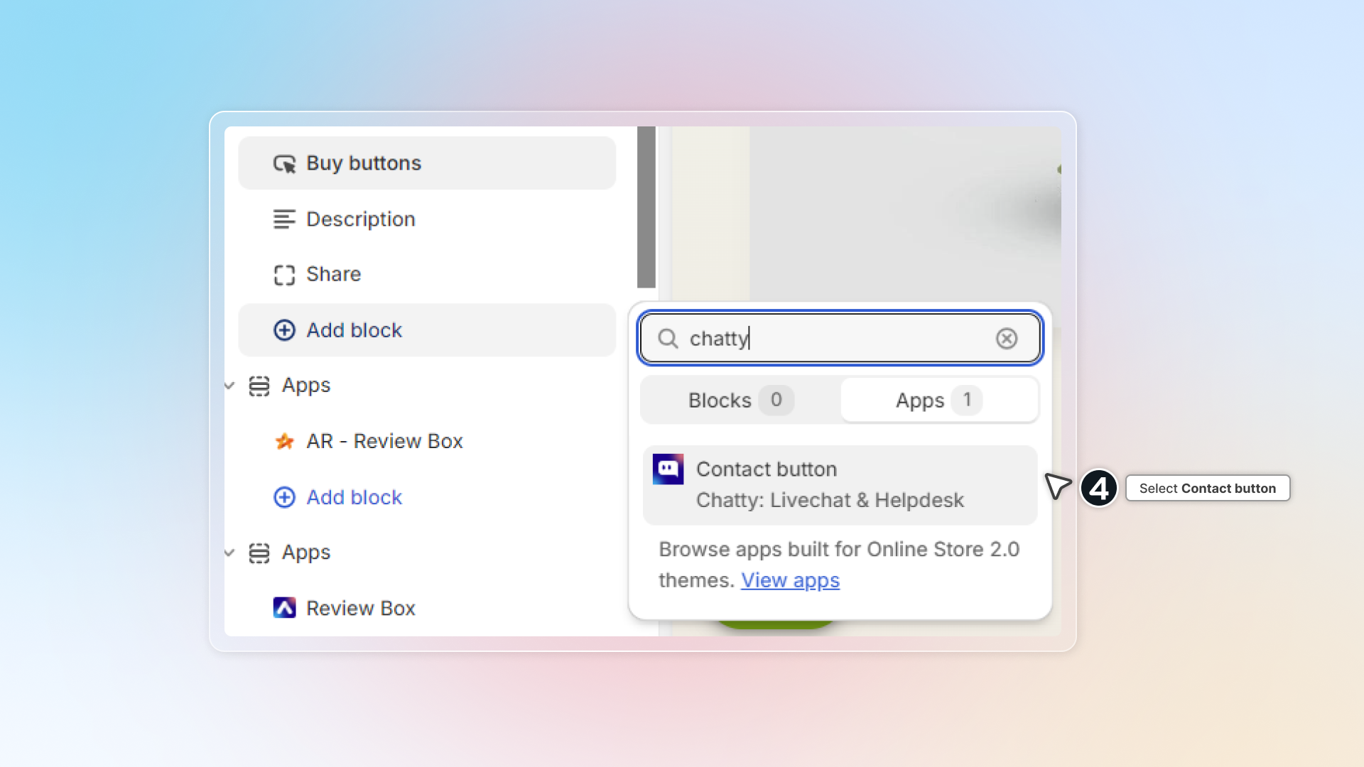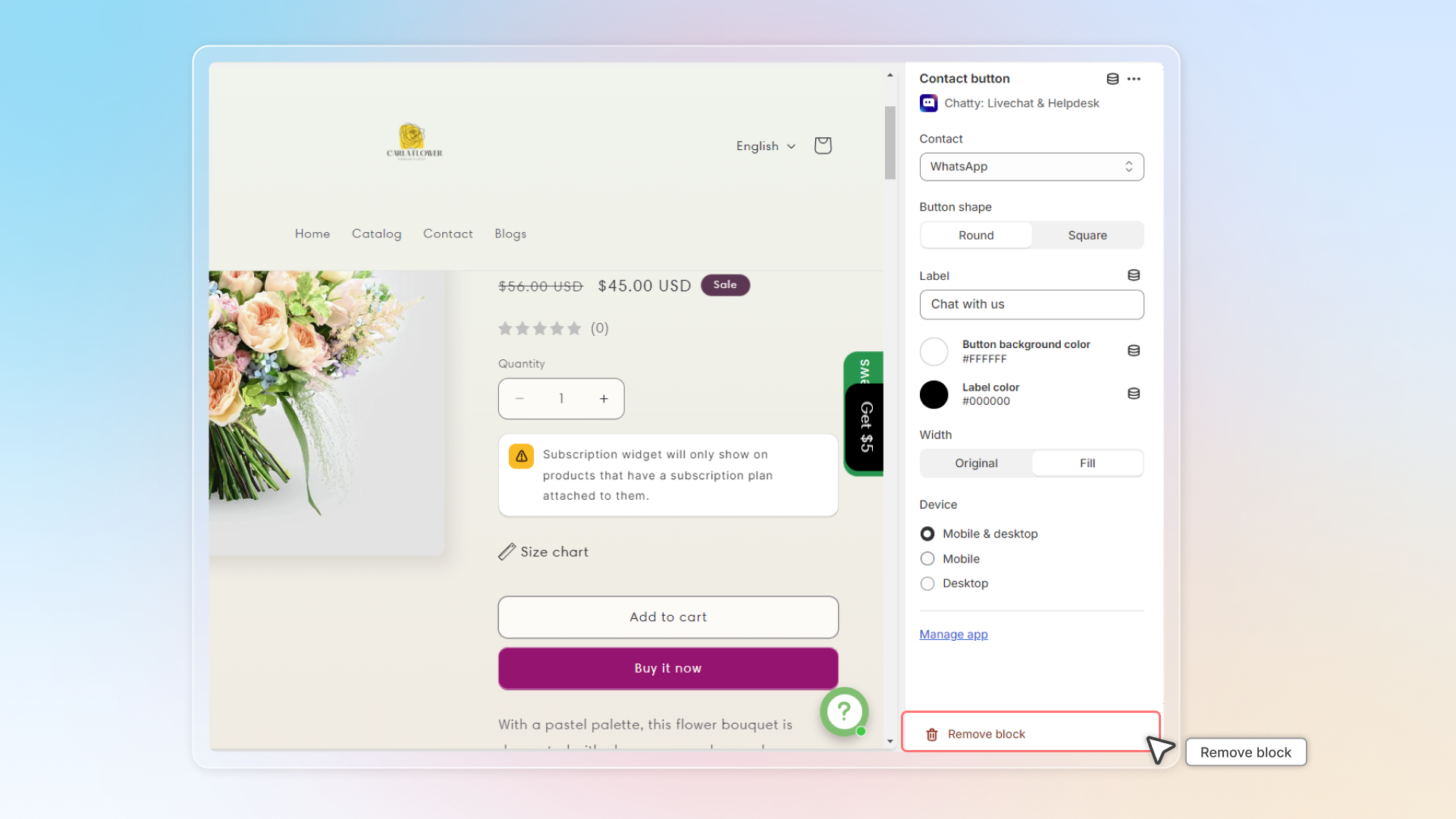In theme editor, select position you want to add contact button -> Click Add block