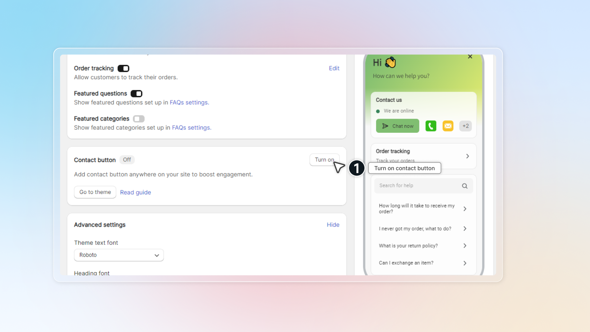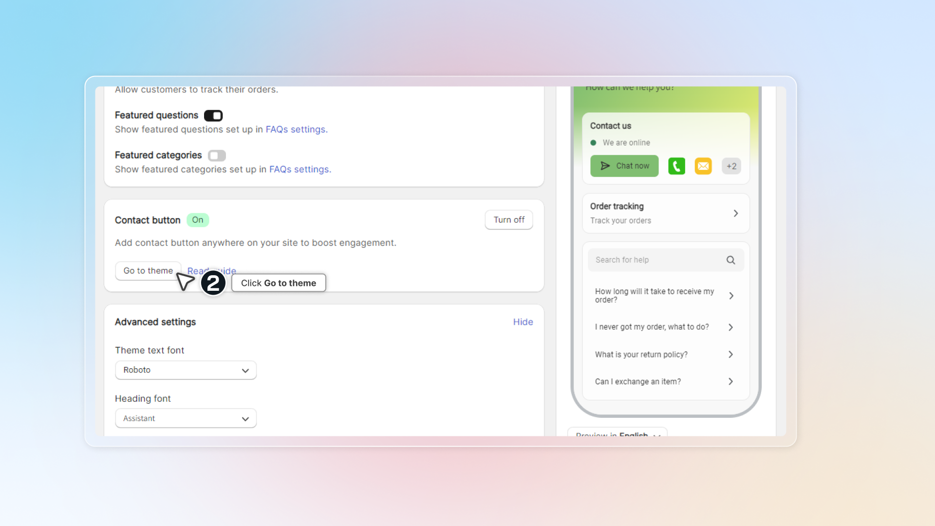 Click Go to theme to add contact button to your theme