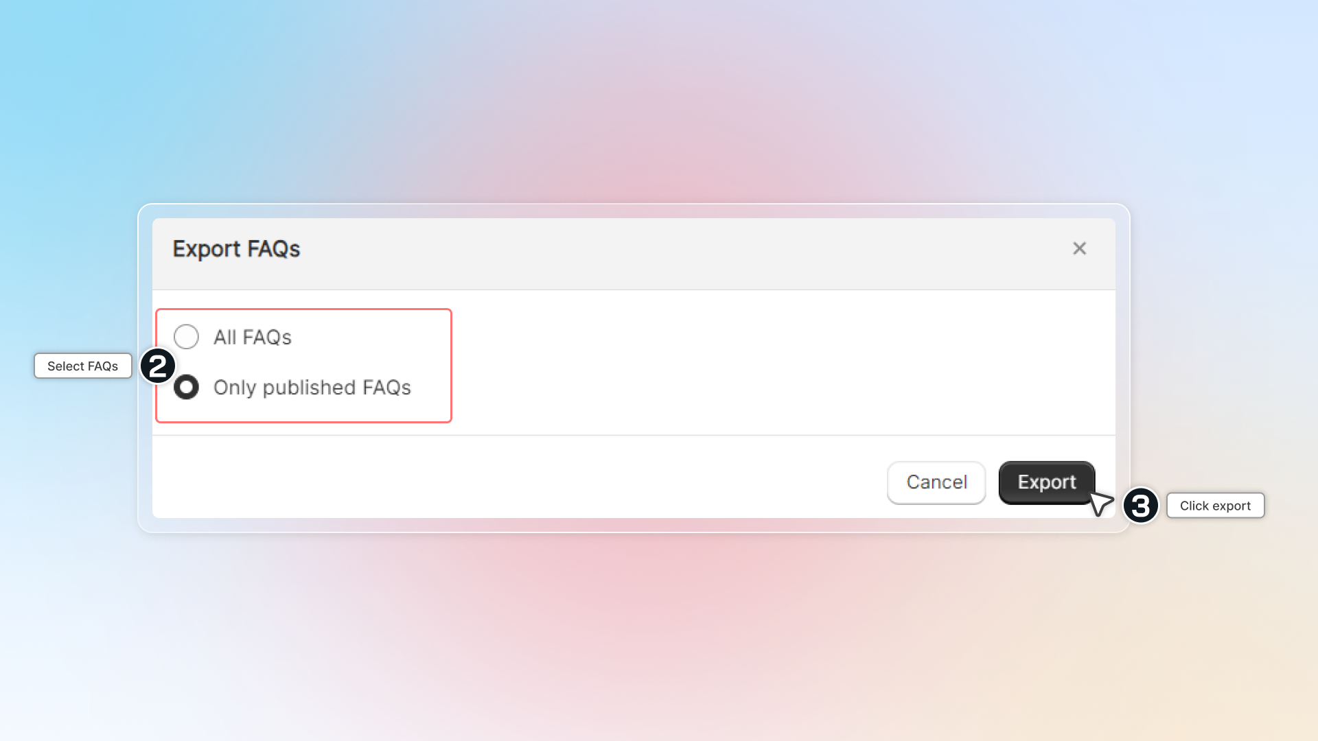 Yes, you can export questions in .CVS file. Go to FAQs -> Select questions & click Export.