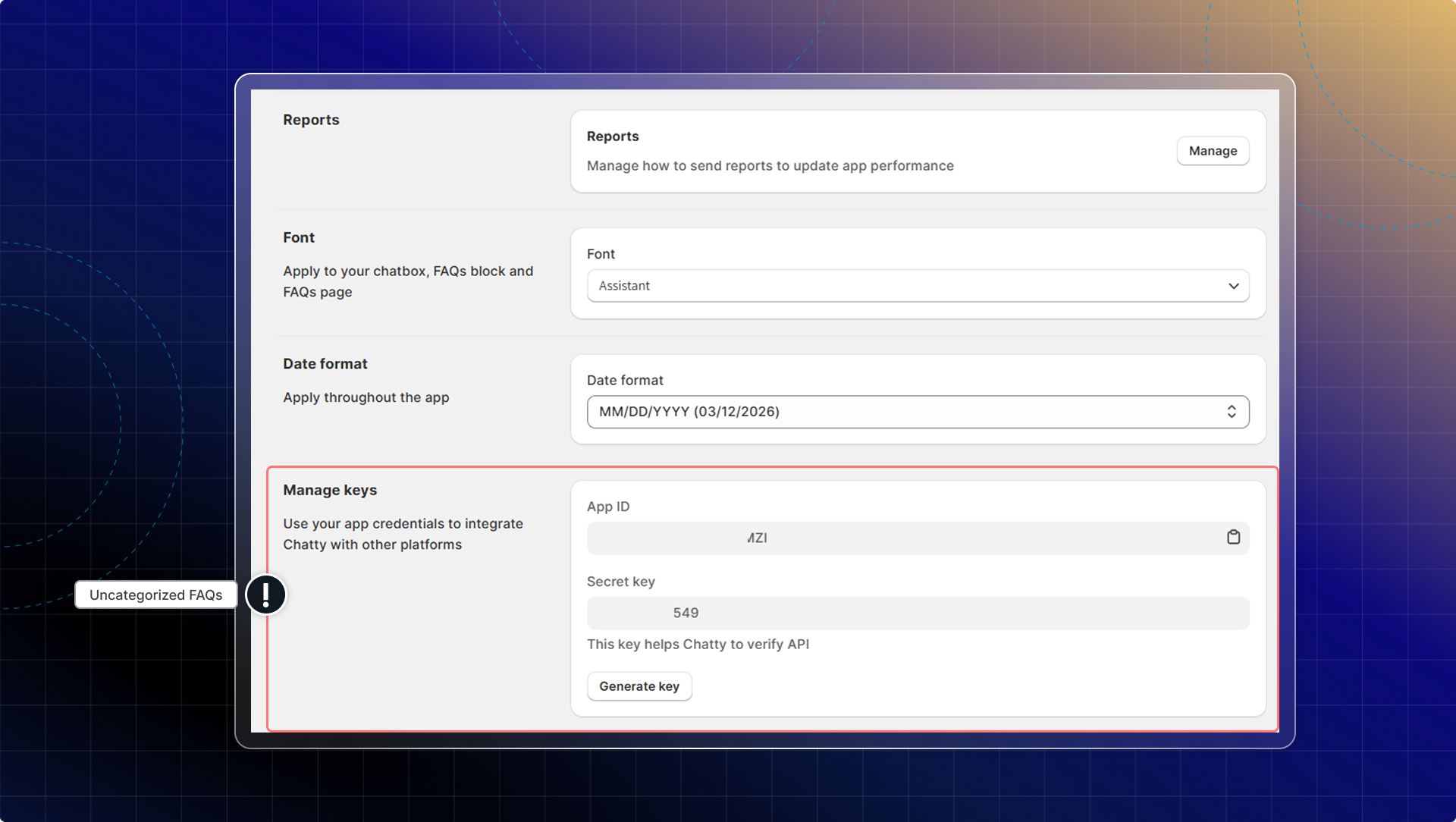 Go to Settings > API in your Chatty dashboard.