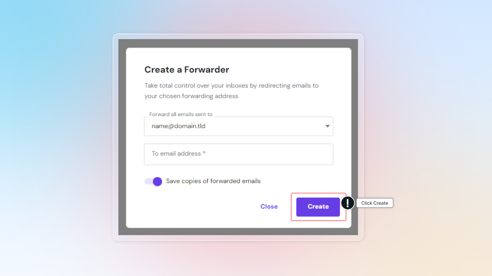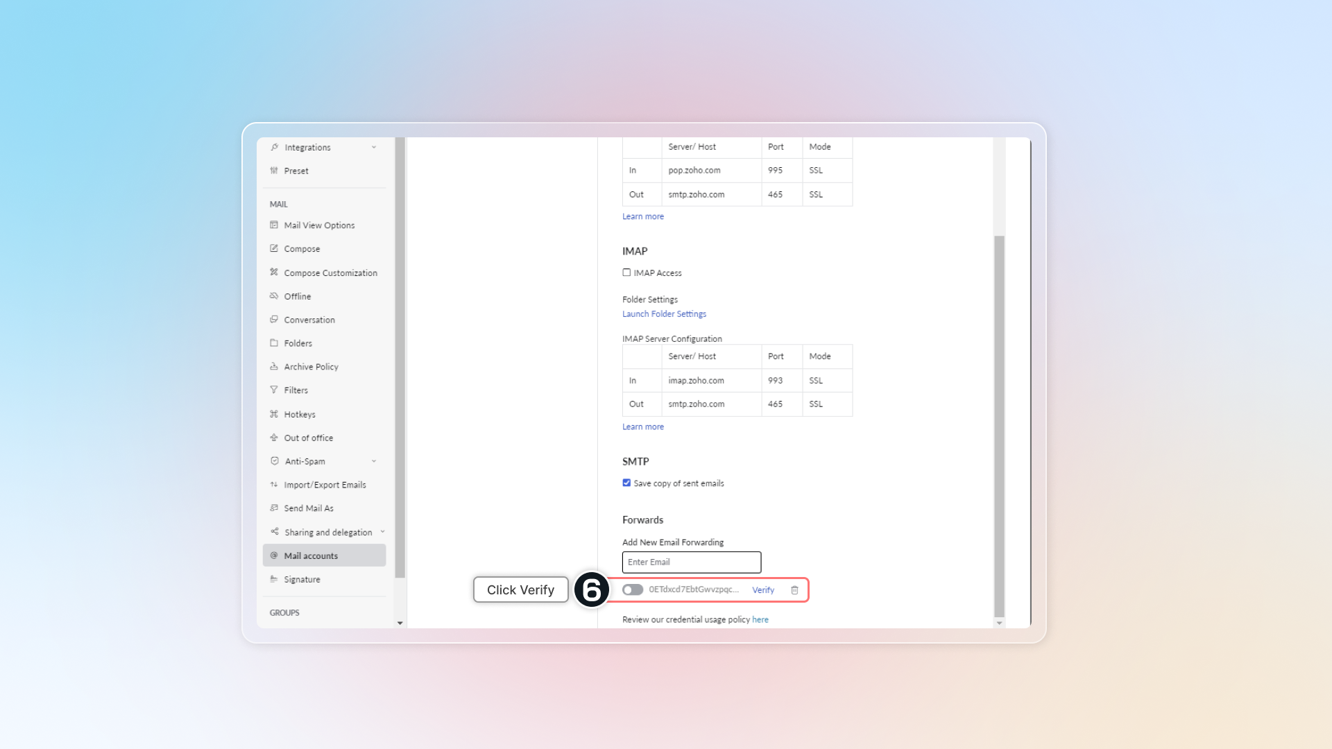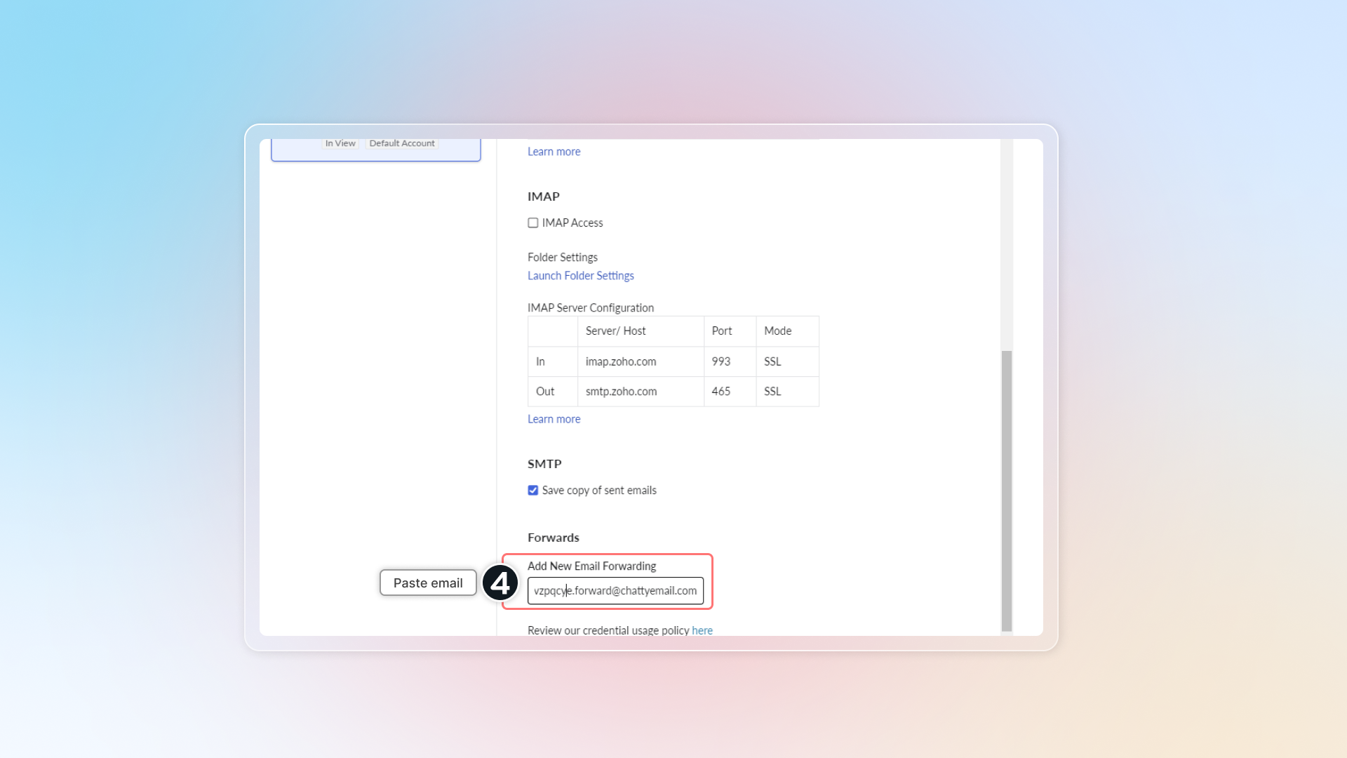 - Copy forwarding address in instruction -> Paste as forwarding address -> Click Save