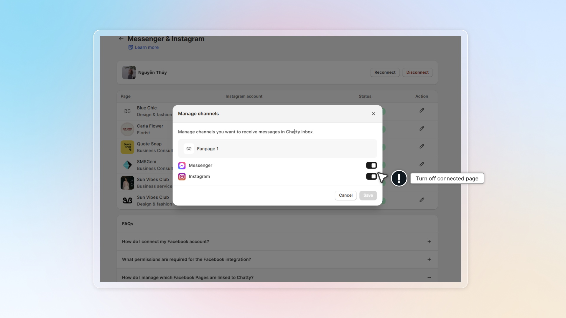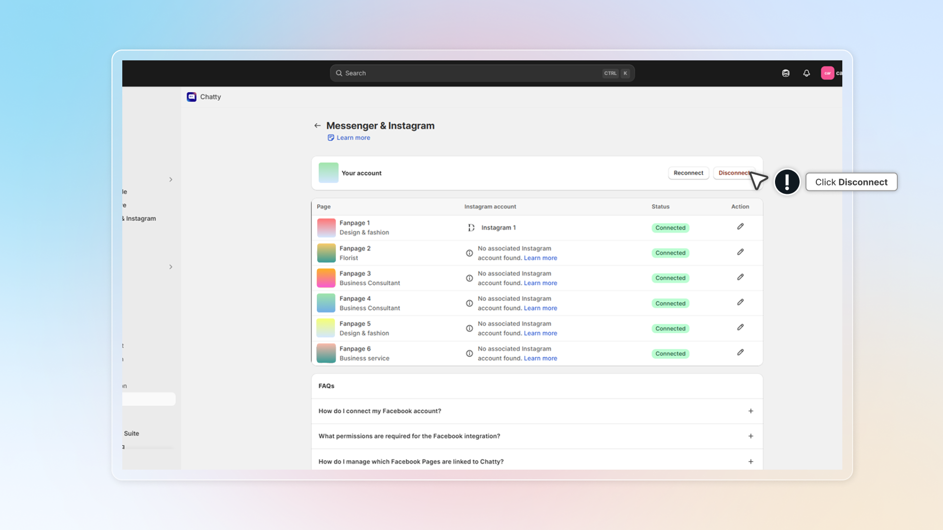 How to connect Facebook and Instagram to Chatty