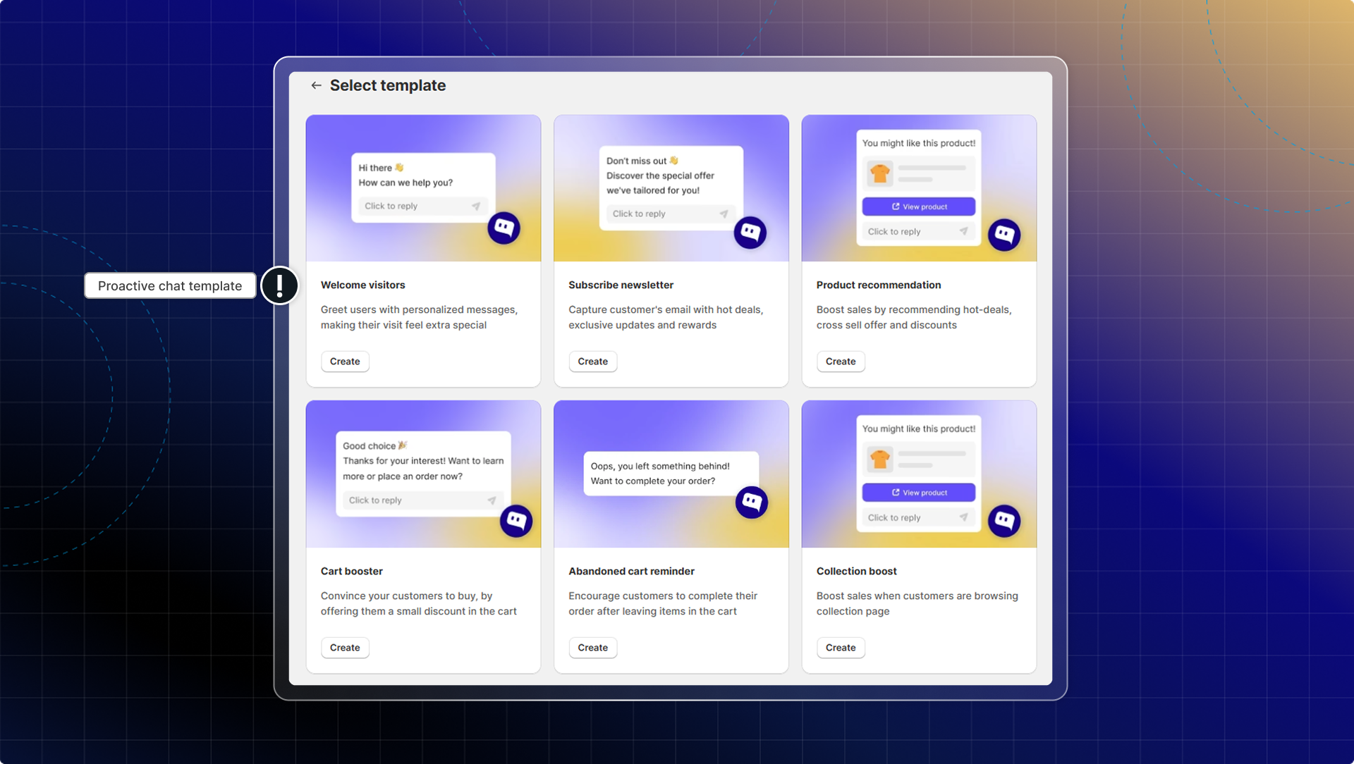 Chatty provides pre-built templates to help you create effective proactive chat campaigns quickly.