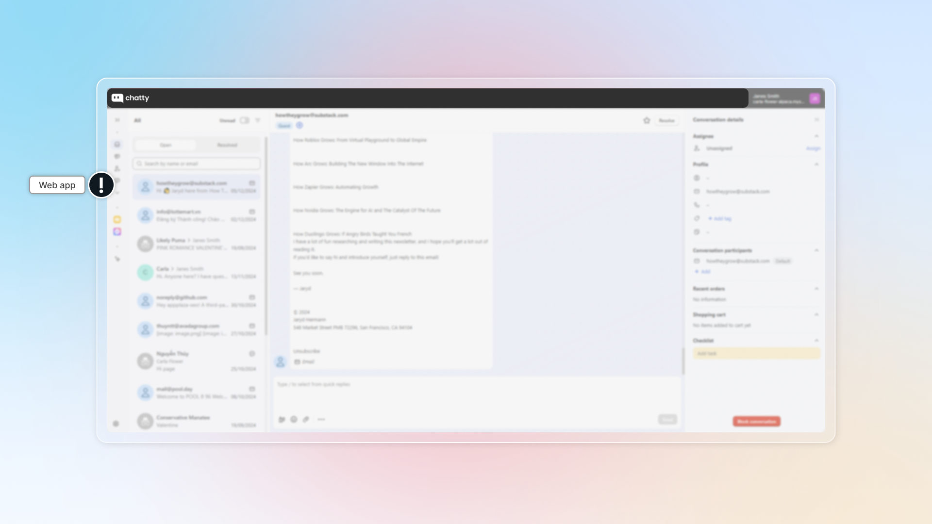 Chatty Web app is a standalone web version that allows you to manage conversations and support tools without logging into Shopify admin.
