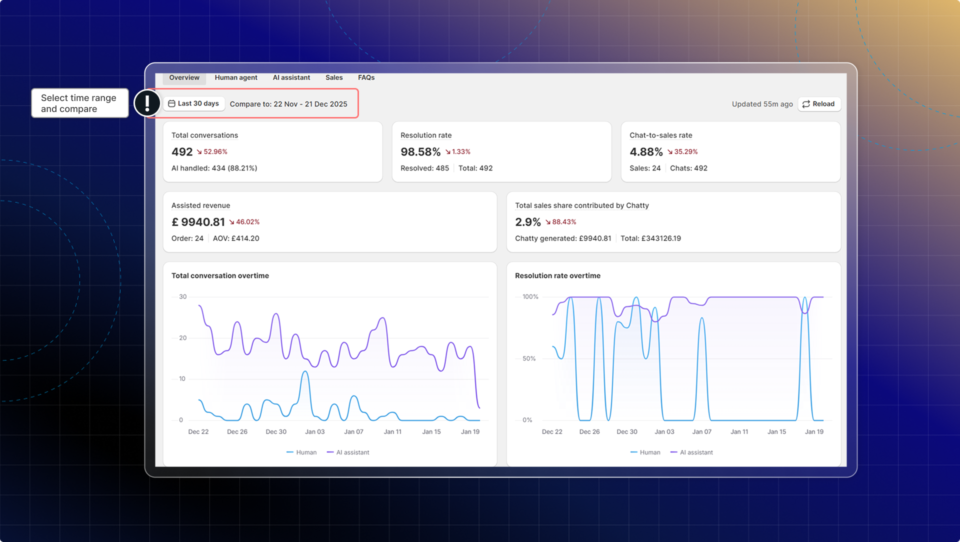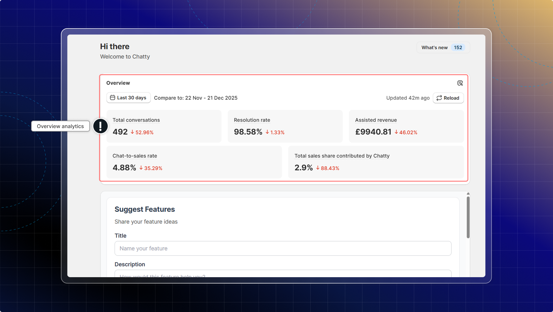 - AI assistant: Insights into how your AI is handling customer inquiries