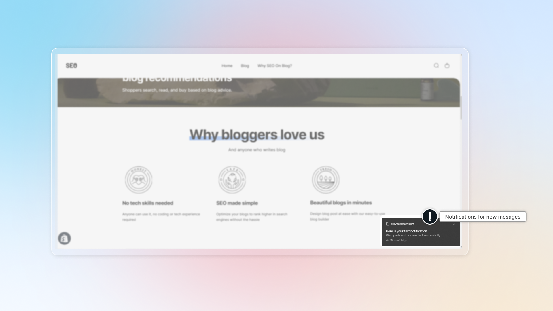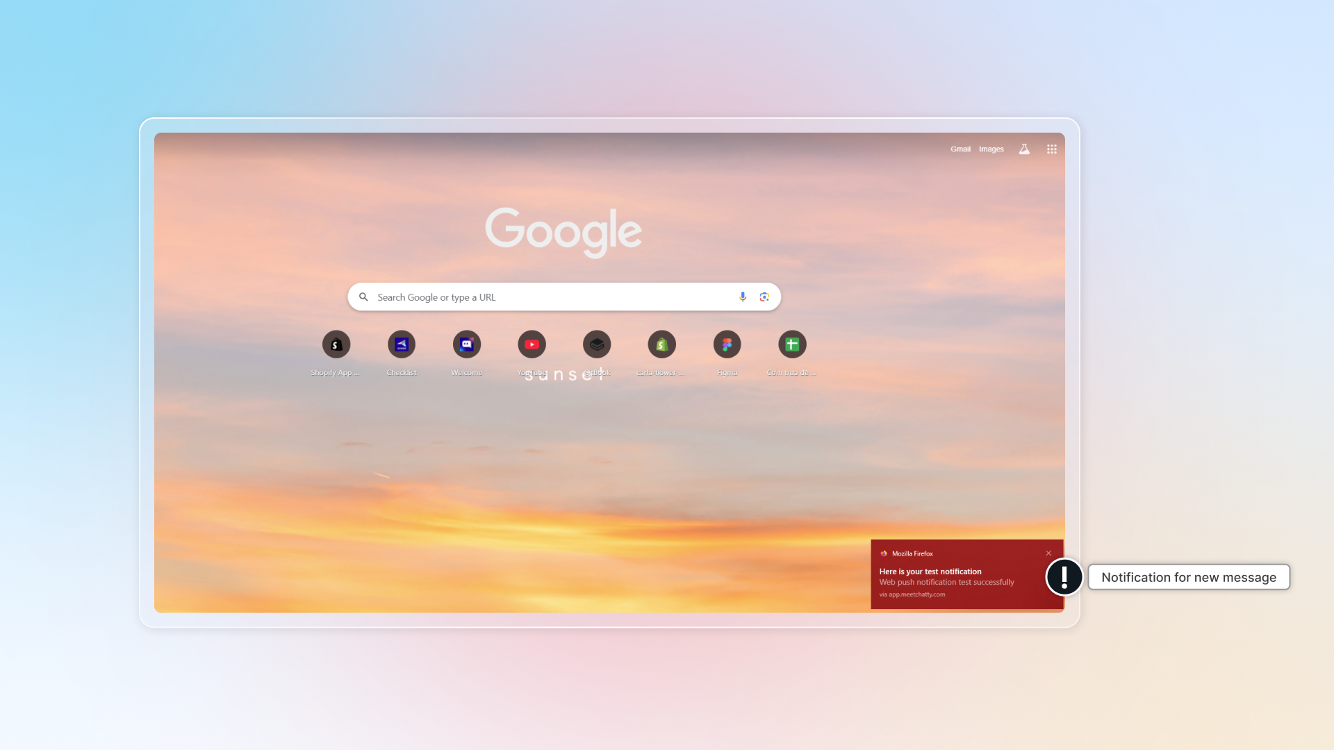 Get back to Chatty and refresh page. Click Send test to check if notification works.