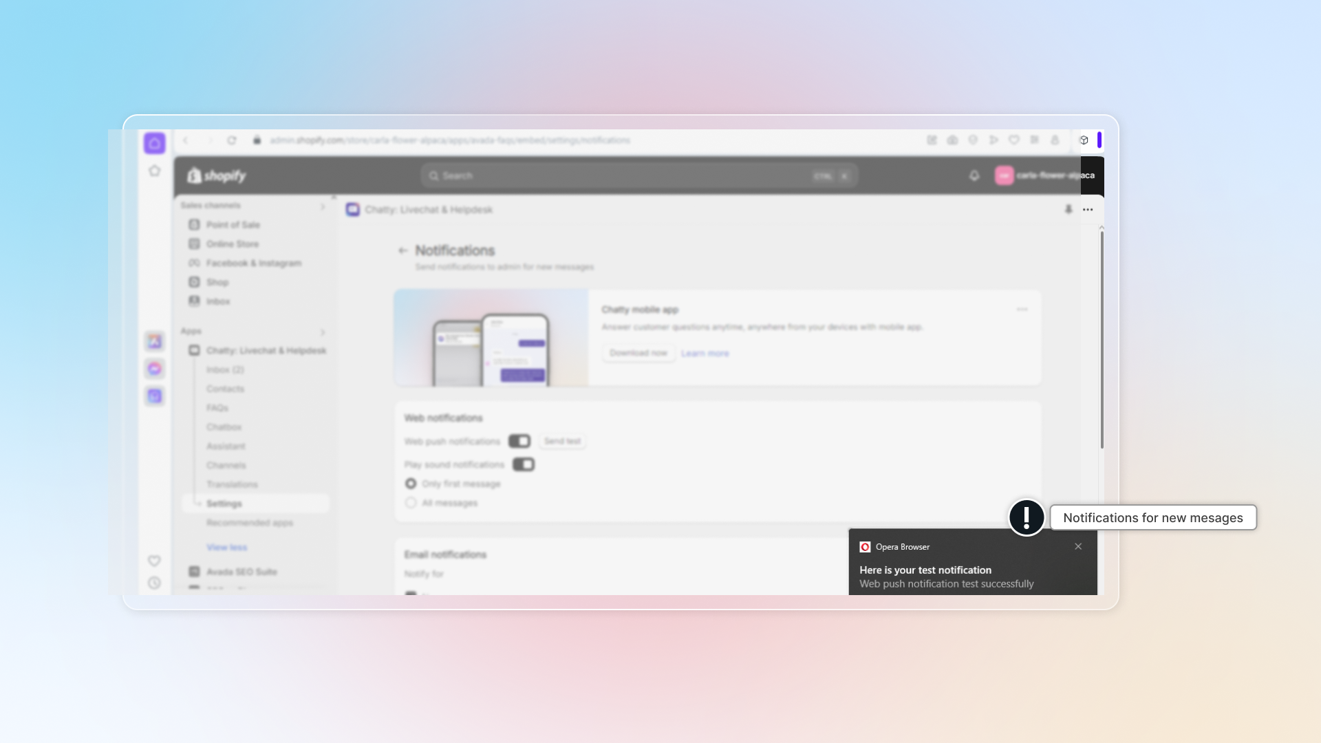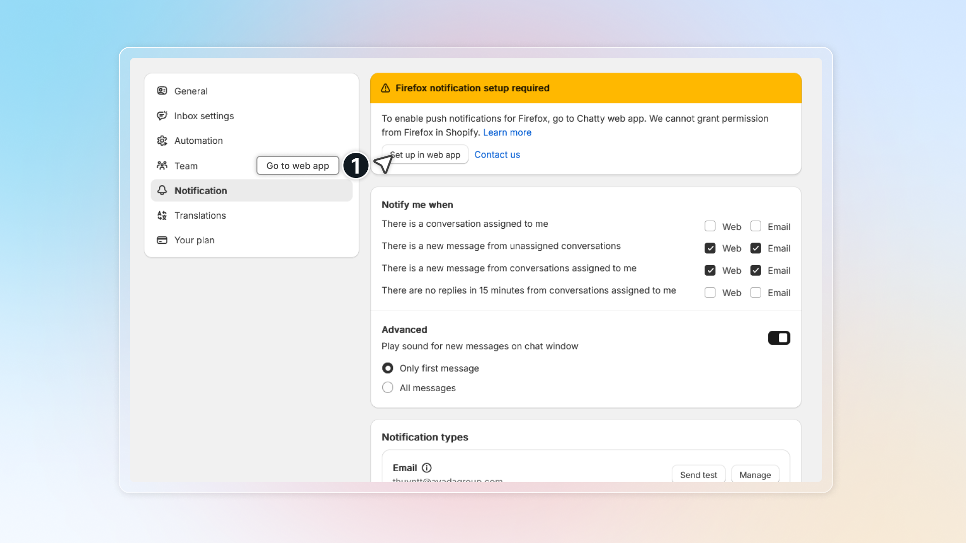 We cannot help you grant permission for Chatty in Shopify embed mode1 if you use Firefox web browser. Go to Chatty web app to activate notification.