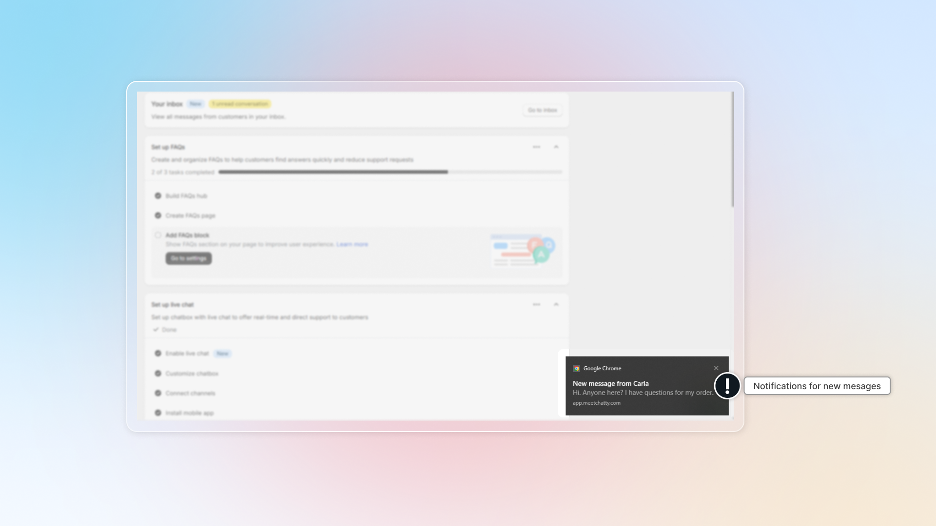 This helps prevent important notifications from being filtered to spam. You'll receive Chatty notifications in your primary inbox and never miss customer messages.